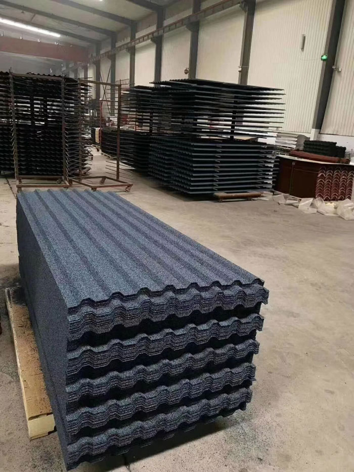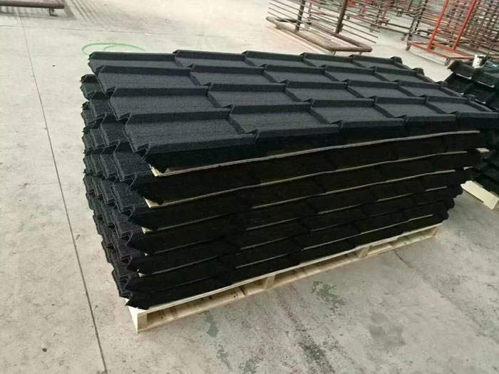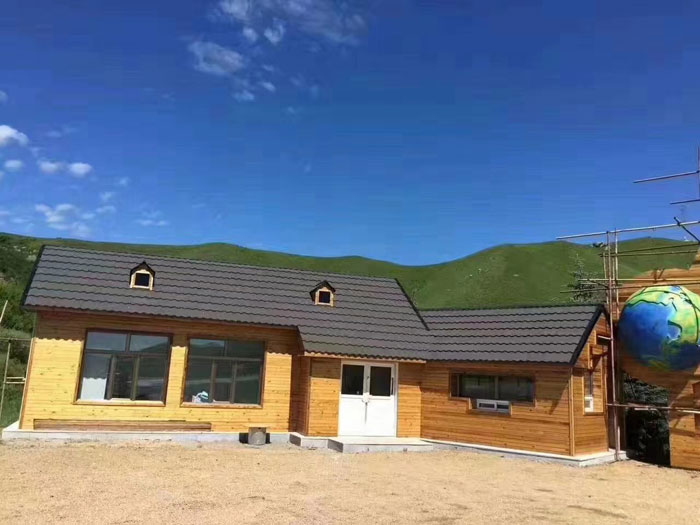 连体型彩石金属瓦优点是:安装快捷,节省人工,工期快,减少龙骨50%用量,人工成本与物料成本双双降低!适合轻钢集成房屋,平改坡工程,厂房改造,大面积屋面施工等。