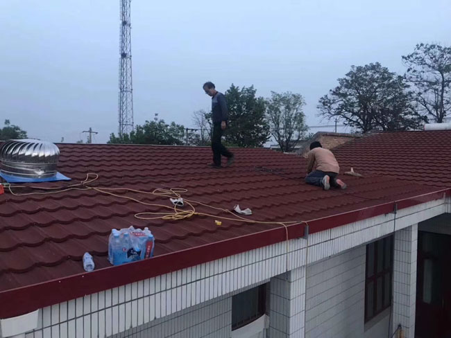 信息来源:布鲁士彩石金属瓦江苏宿平顶改坡顶彩石金属瓦施工案例