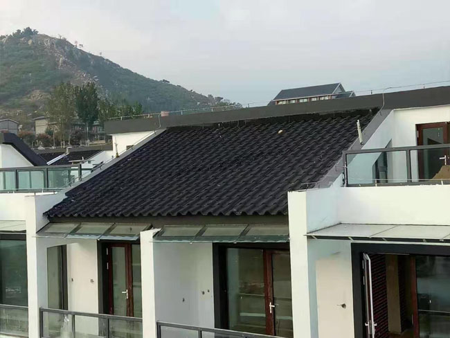 - 蒙山旅游区养生度假别墅彩石金属瓦施工案例
